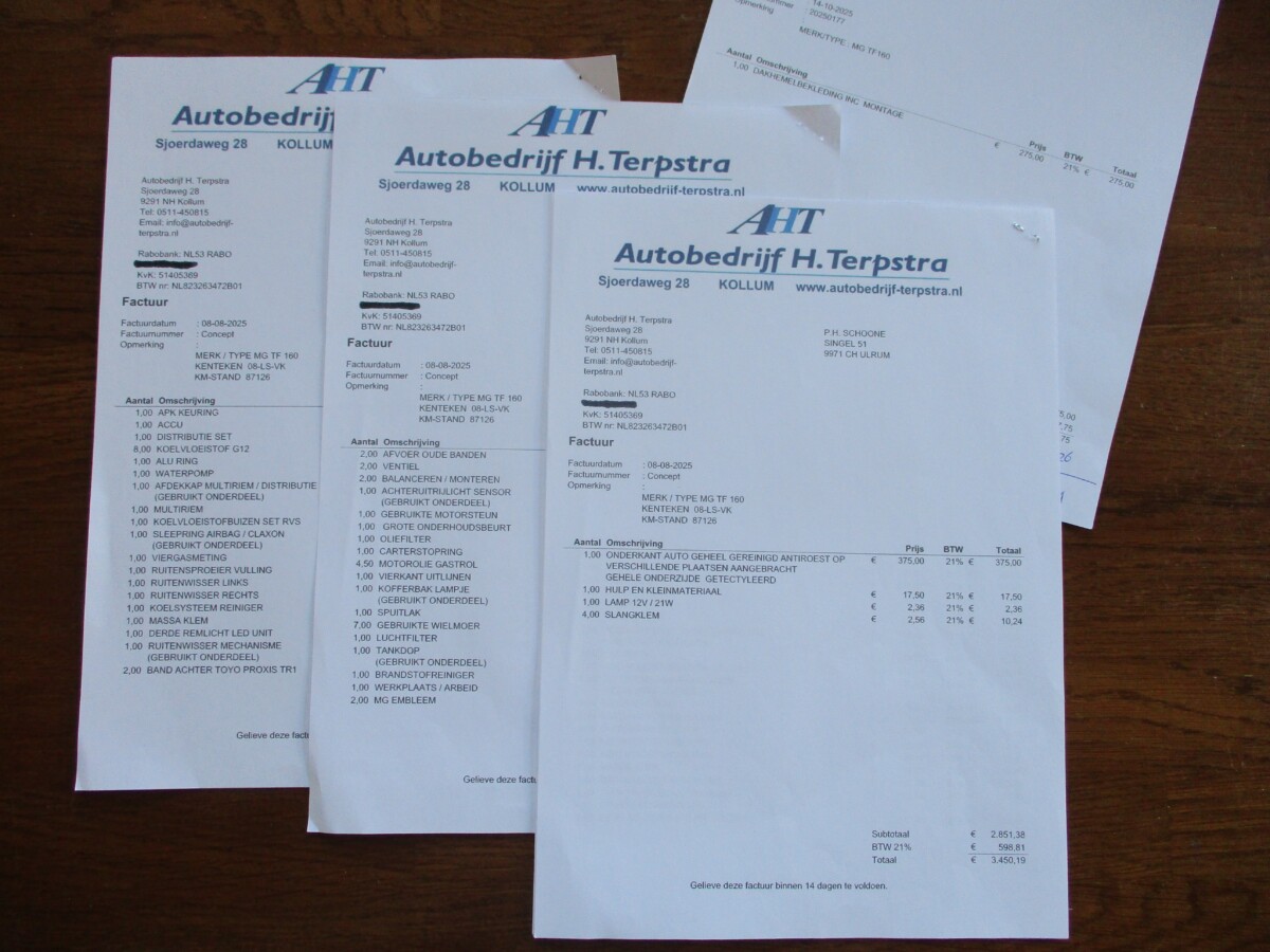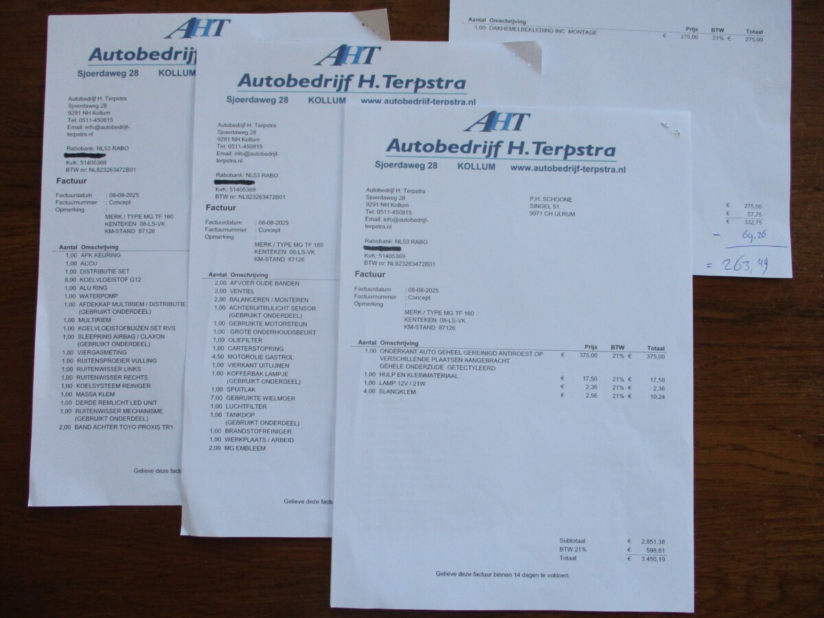Ik heb de auto meteen in een winterstalling gezet en een afspraak gemaakt met de MG specialist Terpstra in Kollum om de auto het volgend seizoen daar te brengen. Dat is ook gebeurd en werkelijk alles is gedaan wat noodzakelijk of (ook preventief) wenselijk is, zonder op kosten te letten.